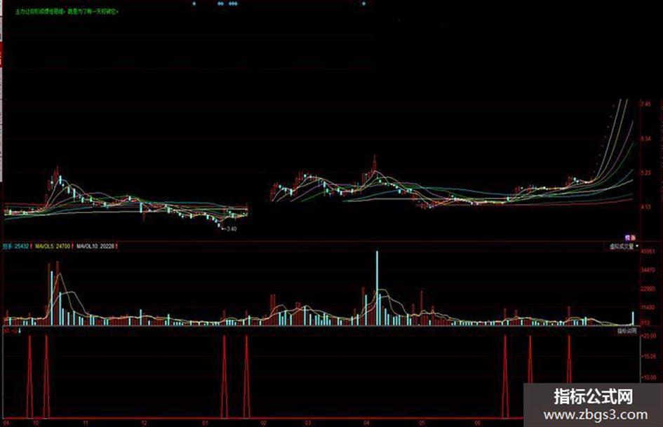 AND (V>1.5*REF(V,1) OR REF(V,1)>REF(V,2))AND MA(V,3)>MA(V,20) ,20,0),colorred,LINETHICK2;