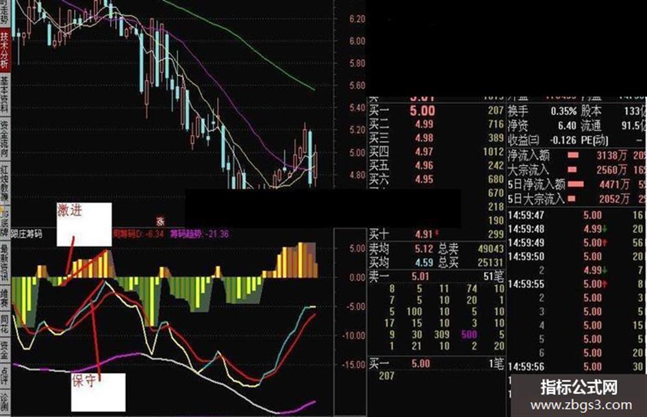 筹码:=(跟庄线-黄金线)/(COST(90)-COST(10))*100,COLOR00FFFF;