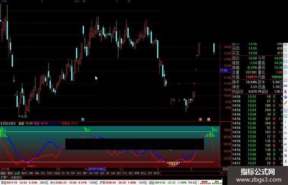 决策线:EMA((CLOSE-VAR5)/(VAR6-VAR5)*100,4),COLORRED,LINETHICK2;
