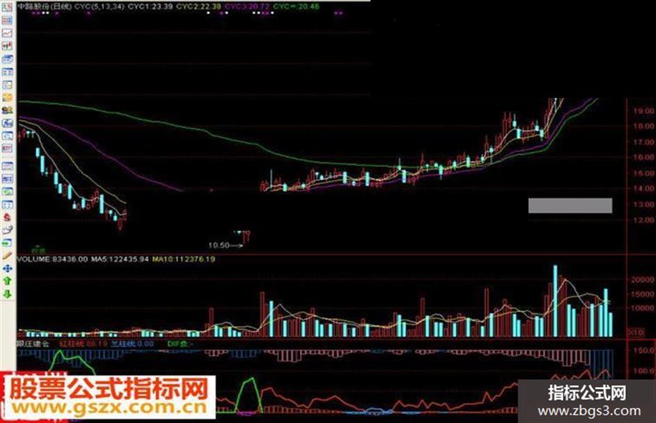 长趋势线:(SUM(中趋势线,6)) / 6,LINETHICK2,COLORGREEN;}