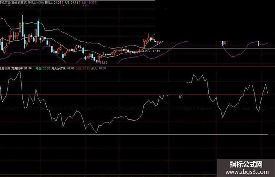 龙腾四海:100-100*(HHV(HIGH,5*100)-CLOSE)/(HHV(HIGH,5*100)-LLV(LOW,5*100)); 海面:20,COLORGREEN; 海天分界线:50,COLORYELLOW; 天际:80,COLORRED; 买入:70,DOTLINE,COLORLIBLUE;