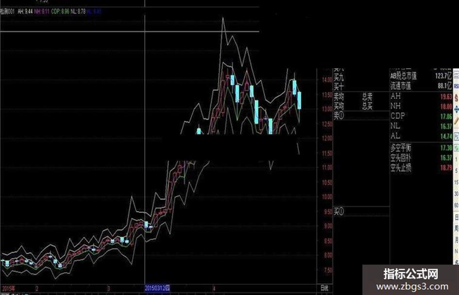 {CDP幅图} DRAWKLINE(HIGH,OPEN,LOW,CLOSE); A:=H-L; A1:=(HIGH + LOW + CLOSE)/3; A2:=2*A1-LOW; AH:A1+A+(A2-A1); NH:A2; CDP:A1; NL:2*CDP-HIGH; AL:CDP-A-(CDP-NL);
