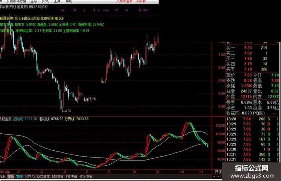 警戒线: MA(VAR1,21),COLORWHITE,LINETHICK1;