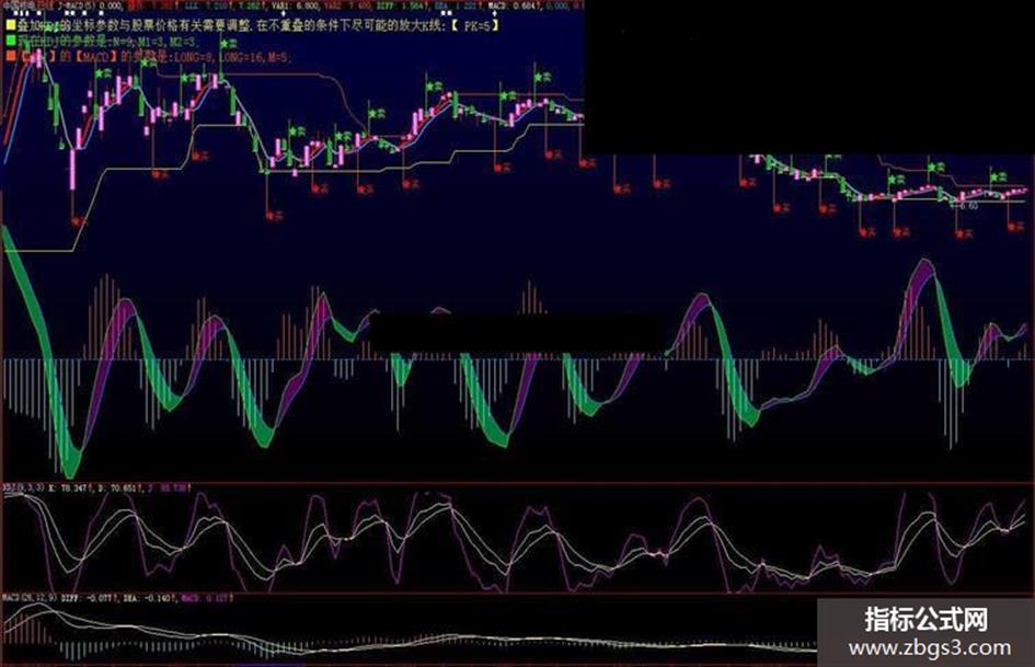 【B】用KDJ的J编辑MACD是有好处.但是你要是用在主图那就不一样了. 这个MACD的数据比原来的MACD大了十倍.百倍.所以和股价极其不协调.为此不得不加参数【PK】然而股价由一两块到几百块.指数则上千上万.所以为了明确看清楚【K线】就必须大幅度调整【PK】这个数据.大家看看我发的图.就明白了.