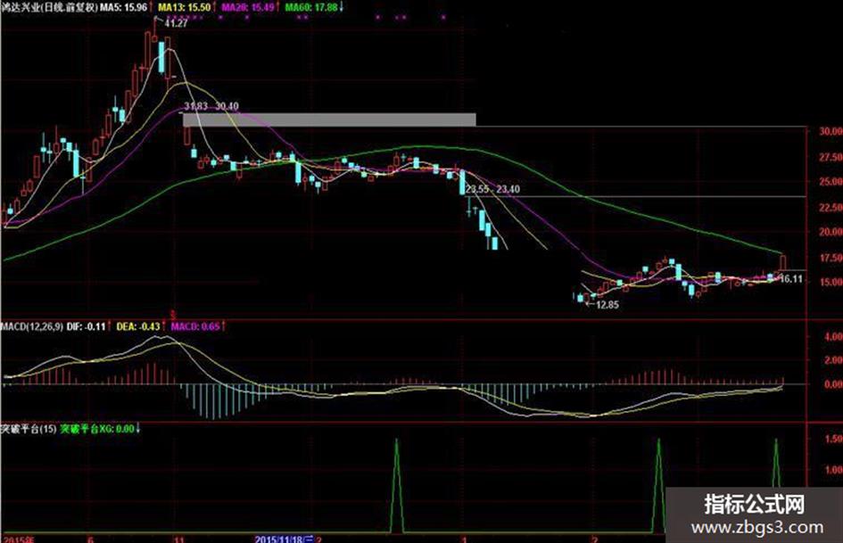 W1:=C=HHV(C,15);{15是天数的高点,可以任意修改,例如想突破30天平台的,就改成30即可}