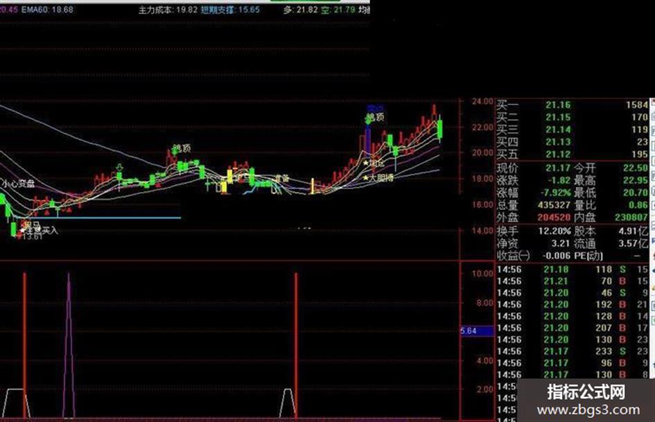 猎杀潜航:IF(CROSS(趋势,底部),10,0),STICK,COLORRED,LINETHICK3;