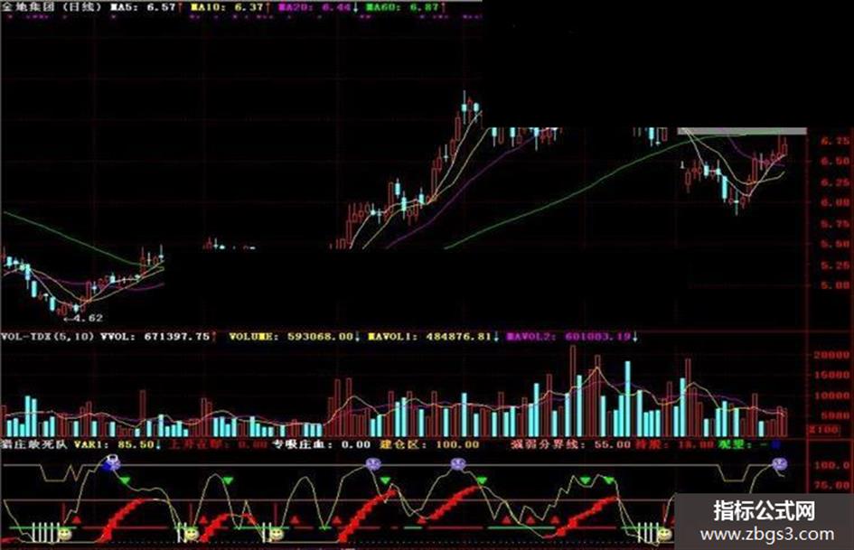 上升在即: IF(CROSS(VAR1,VAR2),50,0),STICK,COLOR0000CC,LINETHICK2;