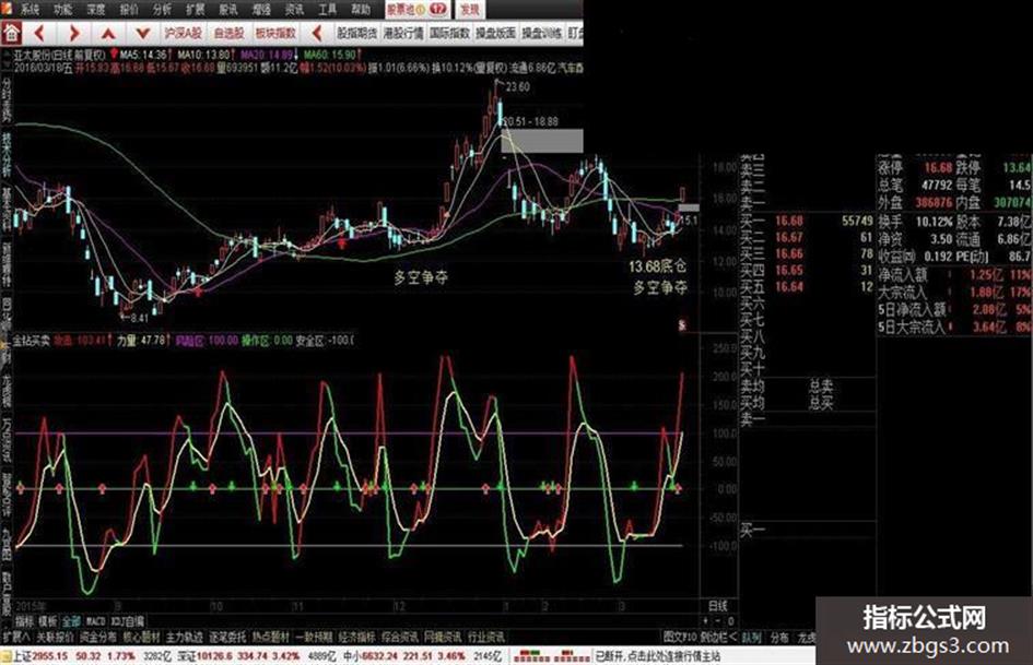 用法:指标含有高抛低吸买卖点提示,在多空争夺密集区会多次出现买卖点,也是最佳机会,下跌行情中,最好持币观望,在安全区可以逢低介入,安全区介入收益非常可观。