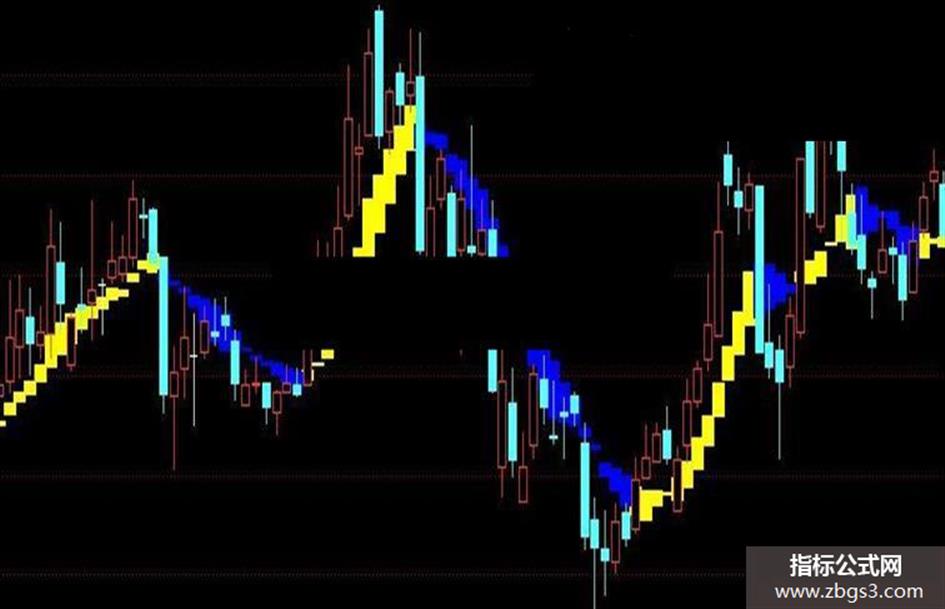 N:=IF(BARSCOUNT(C)>=10,10,BARSCOUNT(C)); STICKLINE(C>=MA(C,N),MA(C,N),MA(C,N*0.7),4,0),COLORYELLOW; STICKLINE(C<MA(C,N),MA(C,N),MA(C,N*0.7),4,0),COLORBLUE; DRAWKLINE(H,O,L,C);
