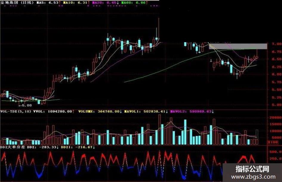 通达信DDZ大单分差副图指标