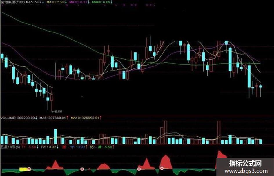 律:IF(T2>=T1,T1,DRAWNULL),COLOR00FF00;