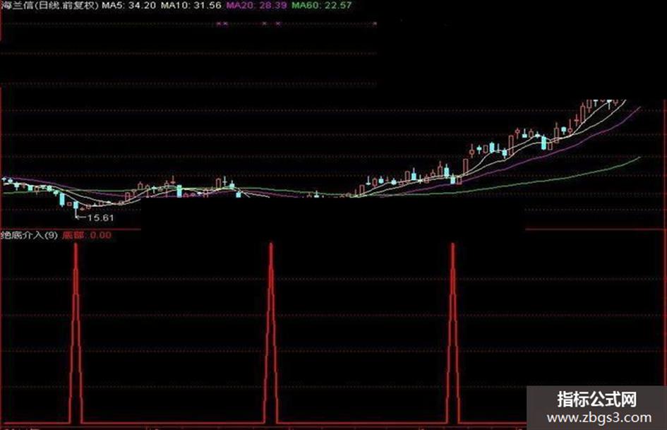 底部:IF(黄金 AND RSV<VARB2-2,50,0),COLORRED,LINETHICK2;