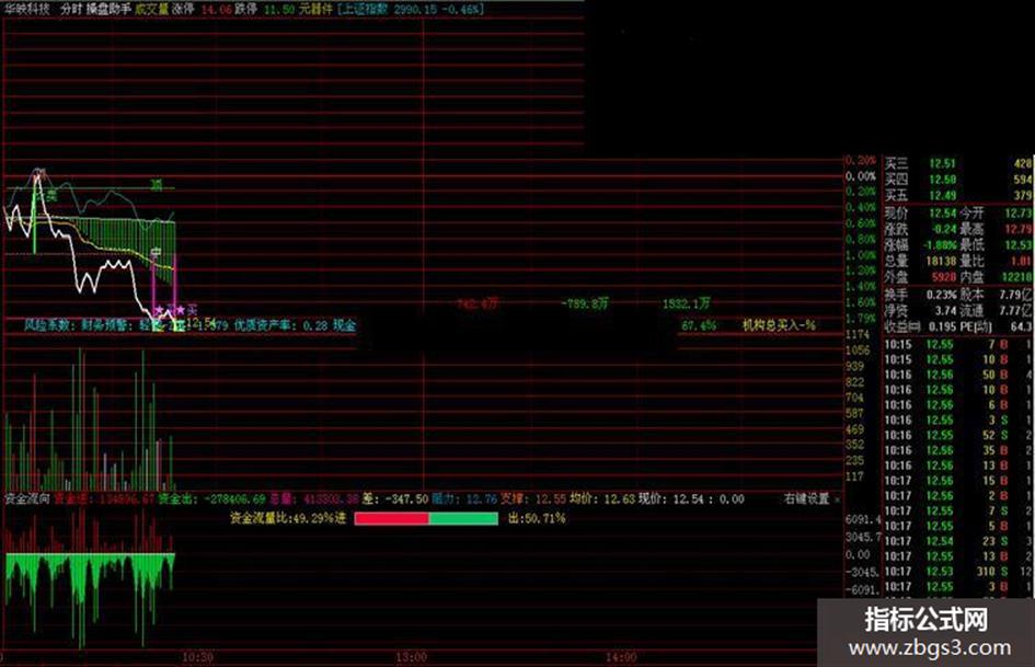 网上有文章说大多数资金进出指标都是不准的,因为普通版证券软件没 L2 分时数据,所以不少指标一般用这种公式表达: 资金流入:SUM(IF(C>REF(C,1),C*V,0),FROMOPEN); 资金流出:-SUM(IF(C<REF(C,1),C*V,0),FROMOPEN); 本人这一段时间苦思冥想,近日特发灵感另辟蹊径,编制源码,看看还可以,发出来先让大家看看图,觉得如何,尤其是高手评论一下。 谢谢大家!