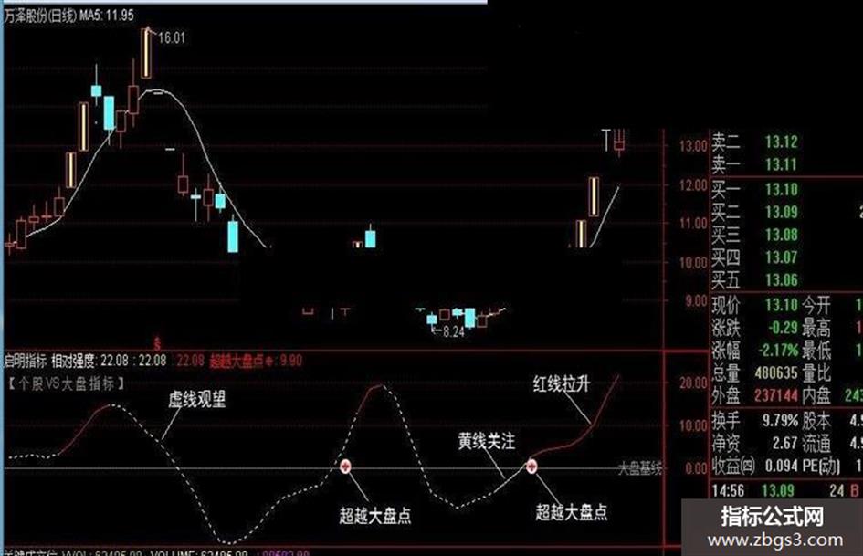 个股图例(如用本指标看大盘,你会发现指标总是超不过大盘基线,因为自己永远无法超越最好的自己哈