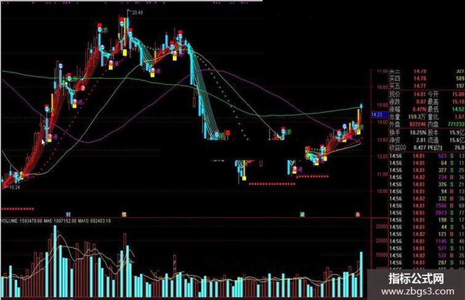 多空线:=(20*X+19*REF(X,1)+18*REF(X,2)+17*REF(X,3)+16*REF(X,4)+15*REF(X,5)+14*REF(X,6)