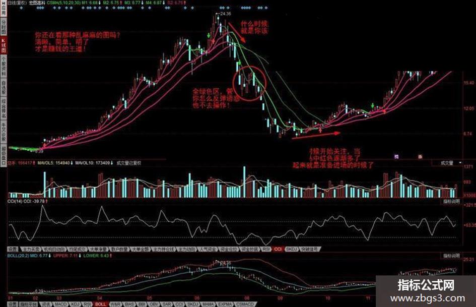 均线指标可能是每一个最常用了的指标了,但大多数的都是系统自带的,很凌乱,比如,你看不到什么时候30日均线开始下降,需要很细心,发一个我自己编写的非常清晰明了的均线指标给大家使用,参数可以自己调整,你可以清晰的看到什么该做多,并持有股票,什么该减仓平仓,什么时候不该持股