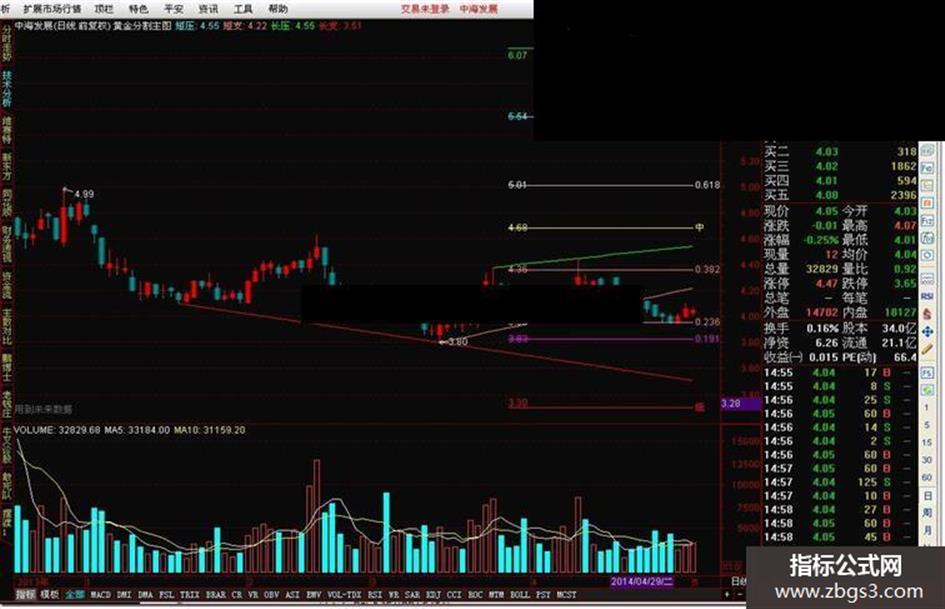 H4:=高-(高-低)*0.618;