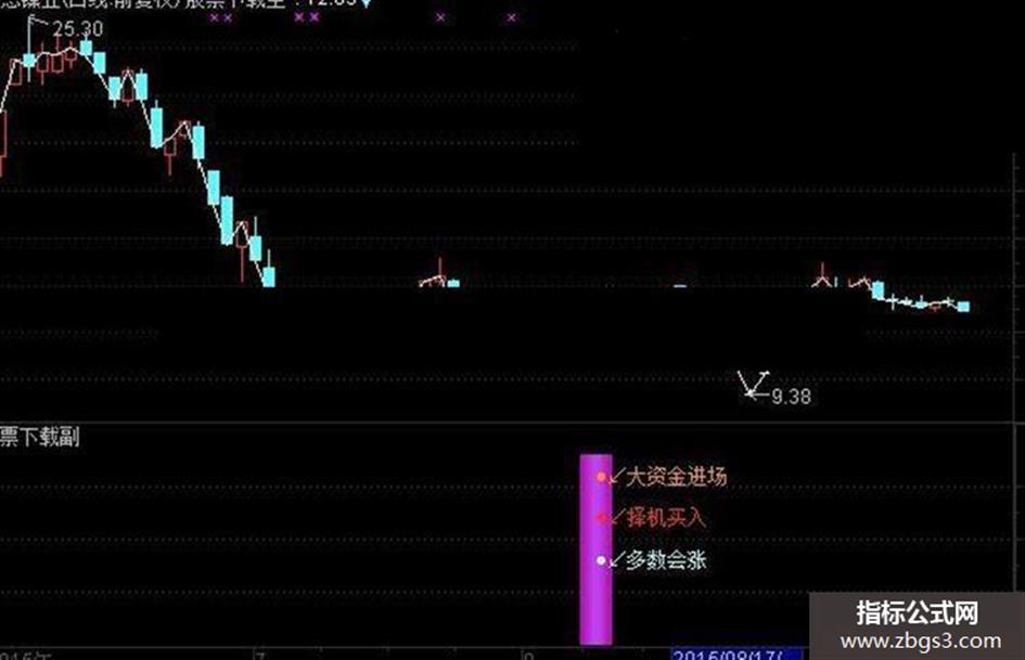 DRAWTEXT(VAR8 AND COUNT(VAR8,18)=1,12,'●↙择机买入'),COLOR0033FF;