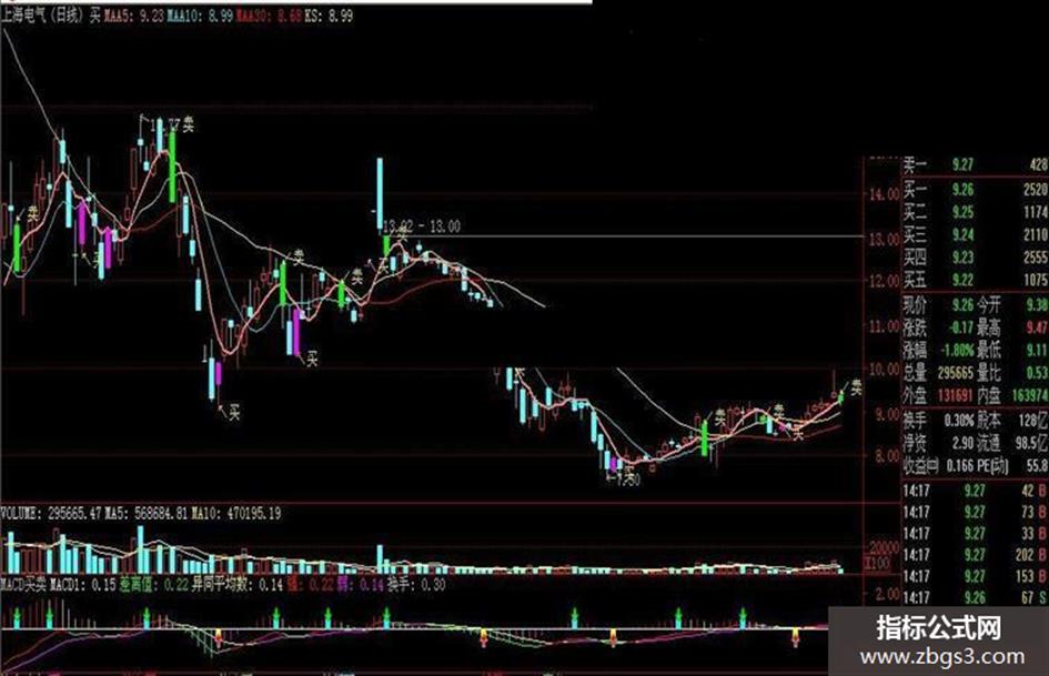 DRAWTEXT(FILTER(买=1,5),LOW-0.05,'↖买'),COLORYELLOW;