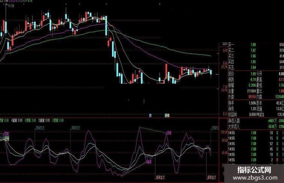 当满足条件J底背时,在KDJ的J位置书写文字,画淡洋红色