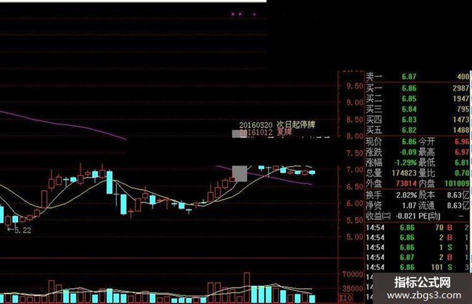 说明:本指标要建两个!首先建立一个:“引用”(一定要用这两个字)公式,就把一句源码粘贴进去就行;其次再建一个公式:“停复牌”(名称可以随你便),把主图源码粘贴进去就OK了。