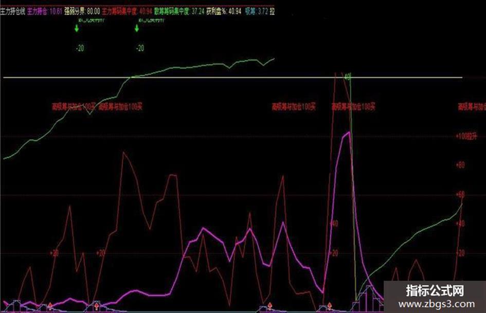 说明:结合主图判断底部吸筹情况和主力持仓是上升还是下降。主力持仓上穿散户筹码,主升浪买进,一路持有.十次八次成功,配合均线.主筹达到80%,散筹方向向下,说明主力已高度控盘筹码大部分锁定,等待主升浪。判买点.顶底,比较适合波段操作。