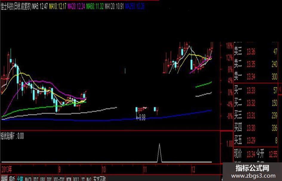 短线起爆:公式的原理是捕捉盘中对重要均线或前期高点的突破。可盘中预警,但记住凡事有两面性,突破有可能是假突破,突破之后可能会回落。因此我通常的做法是在尾盘最后十五分钟打开预警。或者收盘后选股,次日或后市买低开或回档。公式测试从2013年11月1日起至2013年12月13日止,预警符合条件的股票共152支,平均每天五支左右,具有一定的实盘价值。至于失败的例子,我没时间发了,你们下载后可以自己测试。牢牢记住一点:短线买的是突破,如果一支股票处于平台整理,缩量整理期间,我是看不见它的。预警的都是放量的阳线。止损线的设定:我通常是用跌破预警当日阳线实体的开盘价或最低价即止损卖出。