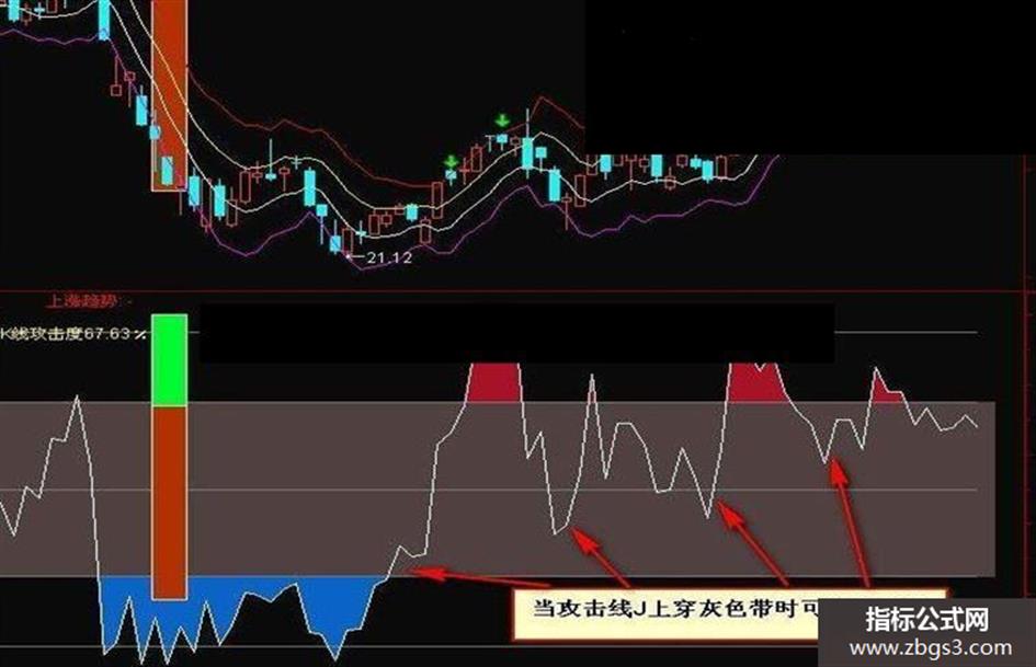 上涨趋势:IF(BT2,J,DRAWNULL),COLORRED,LINETHICK2;