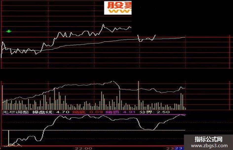VAR1:=LLV(LOW,100); VAR2:=HHV(HIGH,250); 操盘线: EMA((CLOSE-VAR1)/(VAR2-VAR1)*5,5); 绝底:0.03,LINETHICK2,COLOR0000FF; 绝顶:4.91,LINETHICK2,COLORFF00FF; 分界:2.5,COLOR00FFFF; DRAWTEXT(CROSS(操盘线,绝底),0.2,'买入'), COLORYELLOW; DRAWTEXT(CROSS(操盘线,绝顶),4.6,'卖出'), COLORYELLOW; STICKLINE(CROSS(操盘线,绝顶),4.91,2.5,1,0); STICKLINE(CROSS(操盘线,绝底),2.5,0,1,0);
