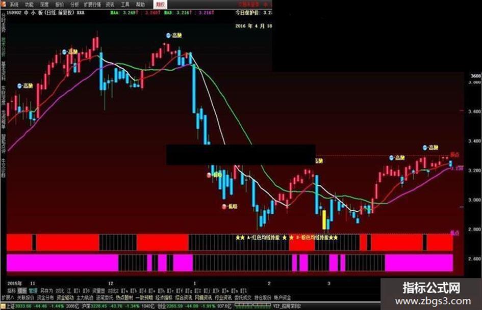 DRAWTEXT_FIX(1,0.5,0.84,0,'★★ A-红色均线持股 ★ ★ B-粉色均线持股★★'),COLOR00FFFF;