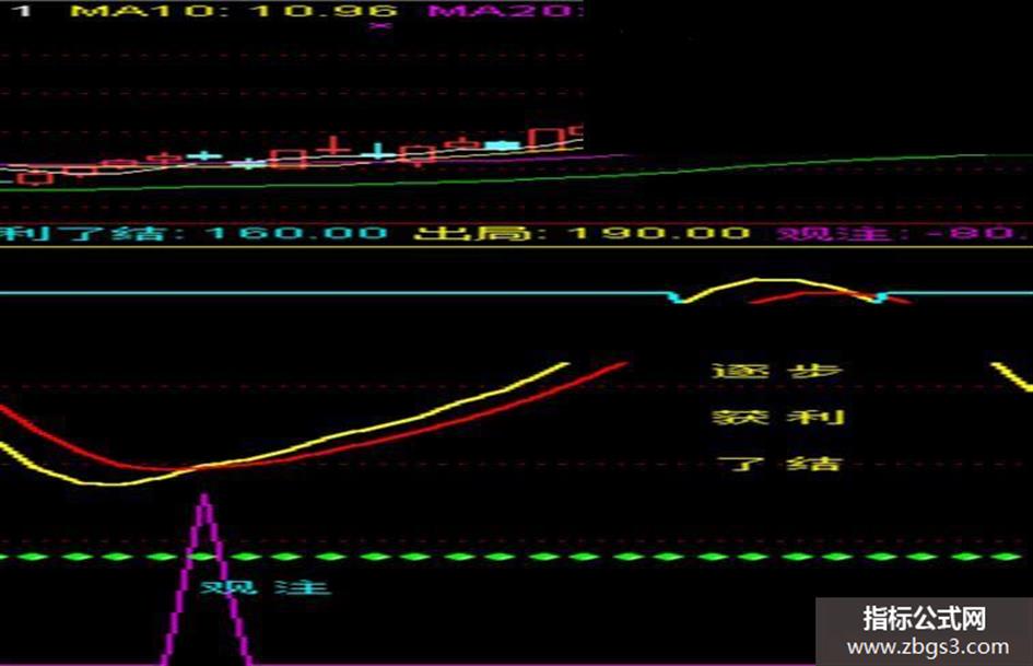 DRAWTEXT(涨>160 AND REF(涨,1)<160,80,'获 利'),COLORYELLOW;