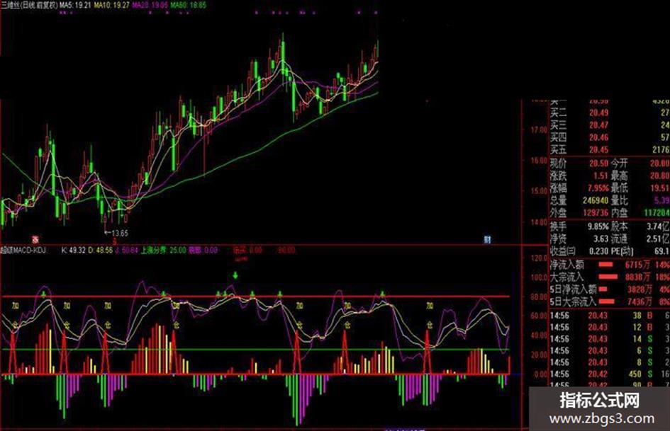 通达信MACD KDJ 量能三金叉 副图+选股源码