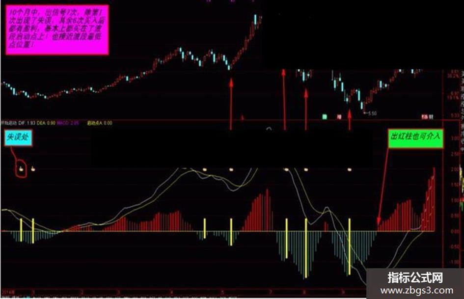 波段启动点是在改变MACD的参数之后而成的,优化原MACD的参数是因为原参数出信号过多,有很多假信号易造成失误,优化后去掉了很多无用的信号,虽然少,但能让你买在大跌或洗盘之后波段的启动点上,接近波段最低点的位置!