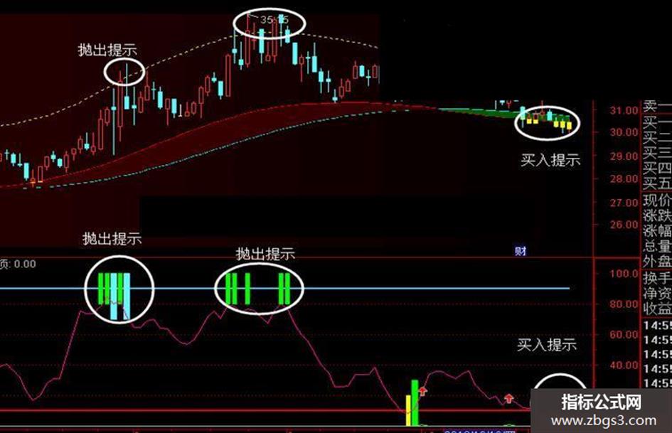 之前的标友发的,没有副图,我帮他把指标分开重新发。 使用方法如图,大家应该能看的懂,两个指标同时出现买入提示时,买进获利概率超高,做波段的利器。