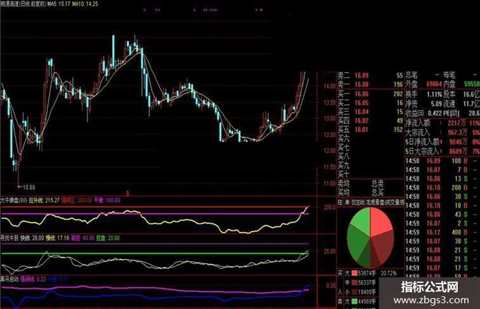 主图包括:5日线、10日线、持股线、抄底线、压力线、牛熊线;