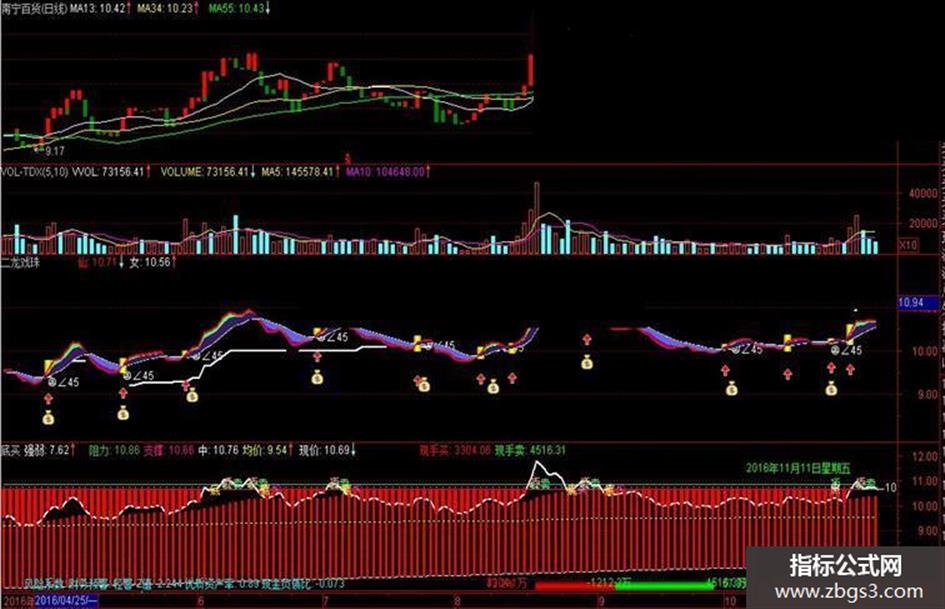通达信二龙戏珠副图指标有上升彩带和下降彩带组成。指标买卖点清晰明确易于操作。