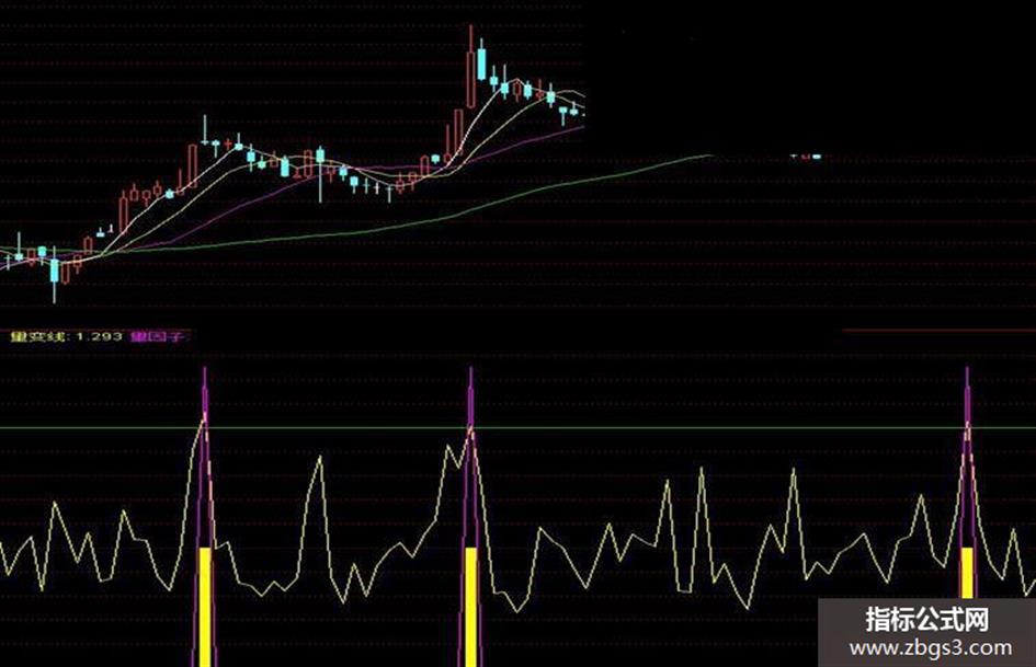 价因子:IF(CLOSE/OPEN>1.06,2.5,0),COLORRED; STICKLINE(价因子,0,1,3,0),COLORRED; 量变线:VOL/MA(VOL,5),COLORYELLOW; 量因子:IF(VOL/MA(VOL,5)>2,2.5,0); STICKLINE(量因子,0,1,3,0),COLORYELLOW; 共振线:2;