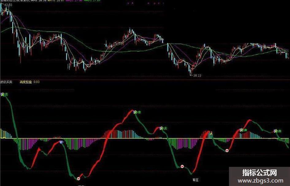 财:=(EMA(CLOSE,S)-EMA(CLOSE,P))*10,COLORRED,LINETHICK2;
