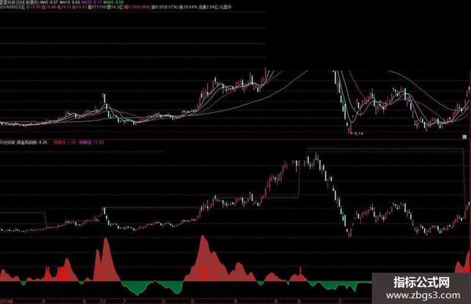 突破线:REF(HIGH,BARSLAST(突破点=1)),COLORMAGENTA,DOTLINE;