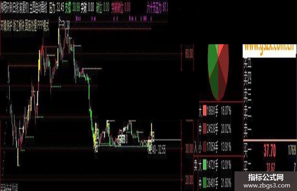 六十天压力:DRAWLINE(BARSLAST(六十天高点)=0,C,BARSNEXT(六十天高点),REF(C,BARSLAST(六十天高点)),1),DOTLINE,COLORMAGENTA;