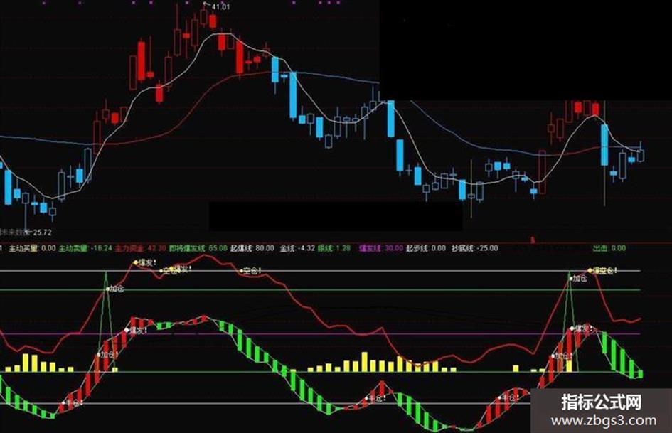 DRAWTEXT(CROSS(主力资金,即将爆发线),主力资金,'■加仓') ,COLORWHITE;