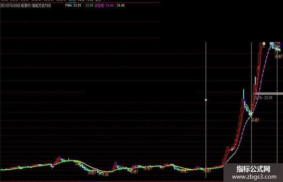 智能变色均线主图指标轻松抓黑马,四川双马的走势图,出现买进信号买入,一路持有直到出现平顶信号卖出,回调至均线又出线买进信号再次买入,一路持有直卖出平顶信号,轻松抓住大行情。