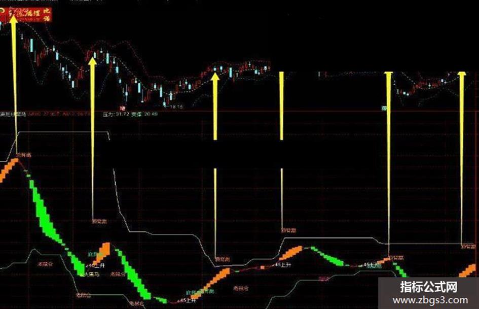 支撑:MA(REF(LLV(C,30),1),2),COLORABFF46; AA1:=AMOUNT/V;BB1:=L<AA1*0.9;