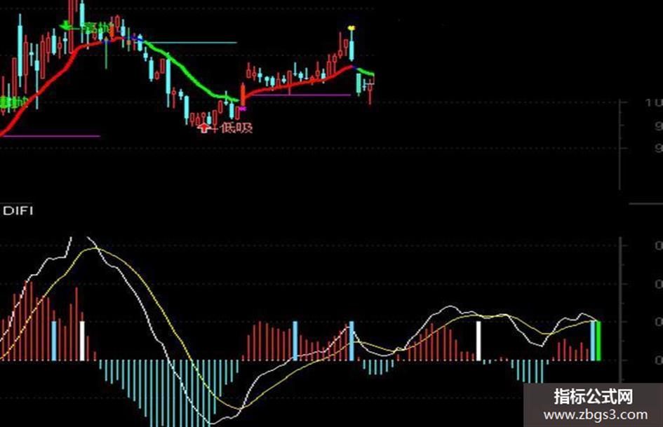 MACD顶背:IF(D1>0,0.1,0),COLOR00FF00,POINTDOT;