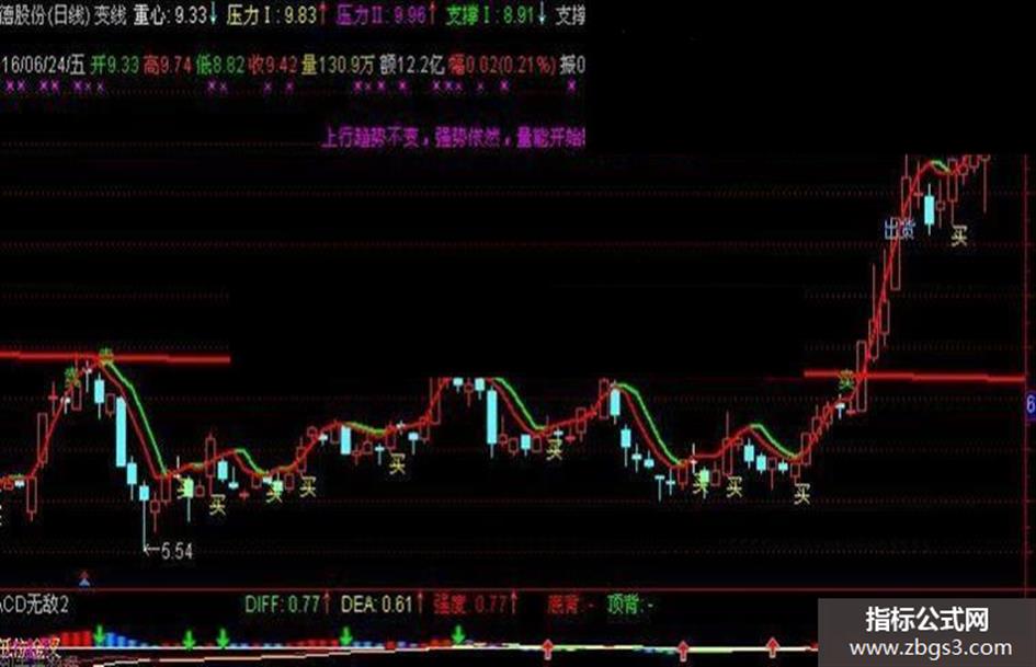 ,'上行趋势不变,强势依然,量能开始转弱,注意风险'),COLORFF00FF ;