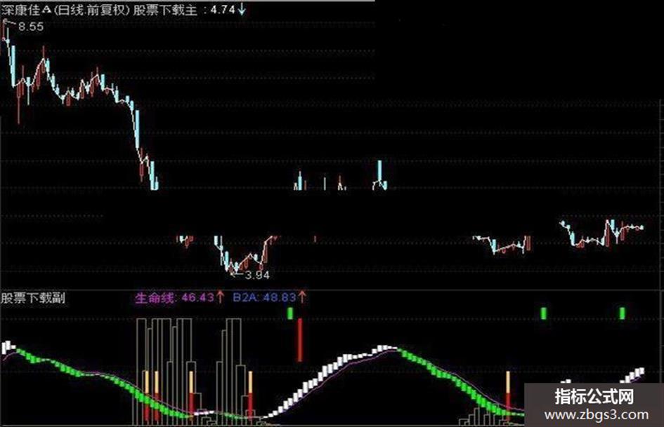 {STICKLINE(B1A-B2A<0,B1A,B2A,2,0),COLOR00FF00;}