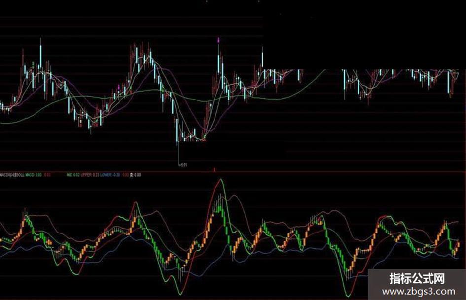 咱们独出心裁看看把K线四要素【C.O.H.L】用在MDCD上编辑它的【K线+BOLL和BTX】是不是会产生奇特的效果.