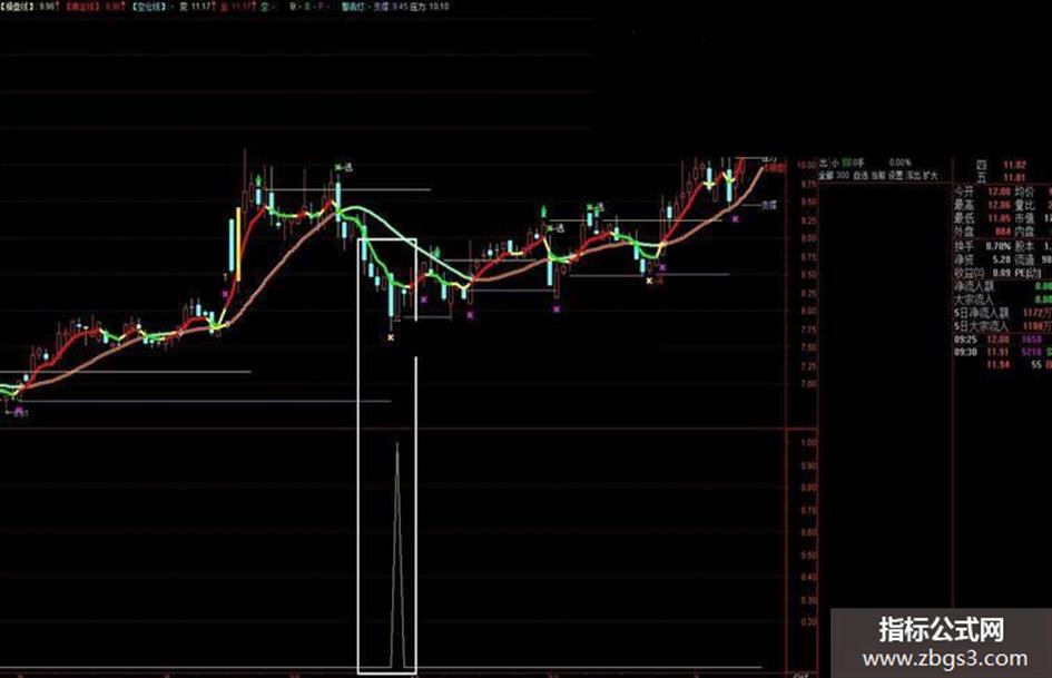 出击:=CROSS(CLOSE,REF(EMA(DMA((((HIGH+LOW)+(CLOSE*2))/4.15),0.9),3),1))AND JTB<55;