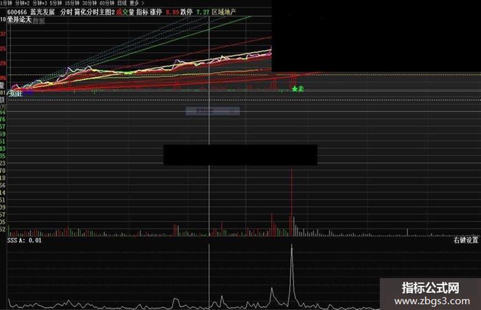 ,全天按分钟划分,不管是1分钟,还是5分钟或者别的成交量都是在一分钟内就算成交的,自然体现在分时里,具体说下这公式我是怎么用的,如图下面,往下走的票,公式中的 A 会很少大于0,而凡时往上涨的都会出现多次 A大于0,如果开盘想抓涨停,不妨多看看A 是否多次A大于0,因为我不会发动态的图片,所以可能解释不清楚,但是你只要明白,往上涨的股,A会多次大于0 ,而往下跌的股特别少,一天也没有2.3次,所以看一只股早盘他是多空,比较好的,也欢迎大家优化,把A大于0 ,用柱线显示出来A:成交量(手)/(33840*10)