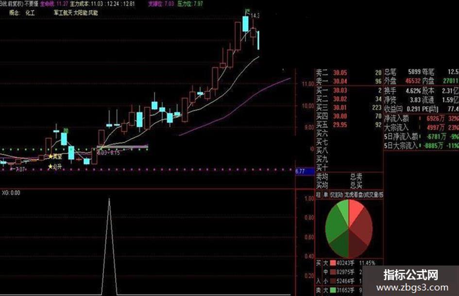 趋势线上穿强势线与主力线,且主力线 和年线与疯牛线均掉头向上。